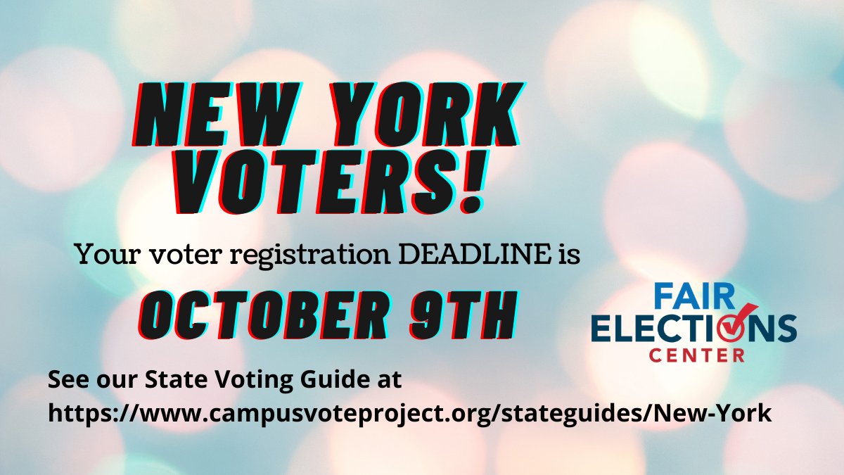 Time is running out NY voters! Your registration deadline is TOMORROW. Sign up to have your voice heard! Our State Voting Guide has helpful info and links https://www.campusvoteproject.org/stateguides/new-york …pic.twitter.com/AzMDa2upDa