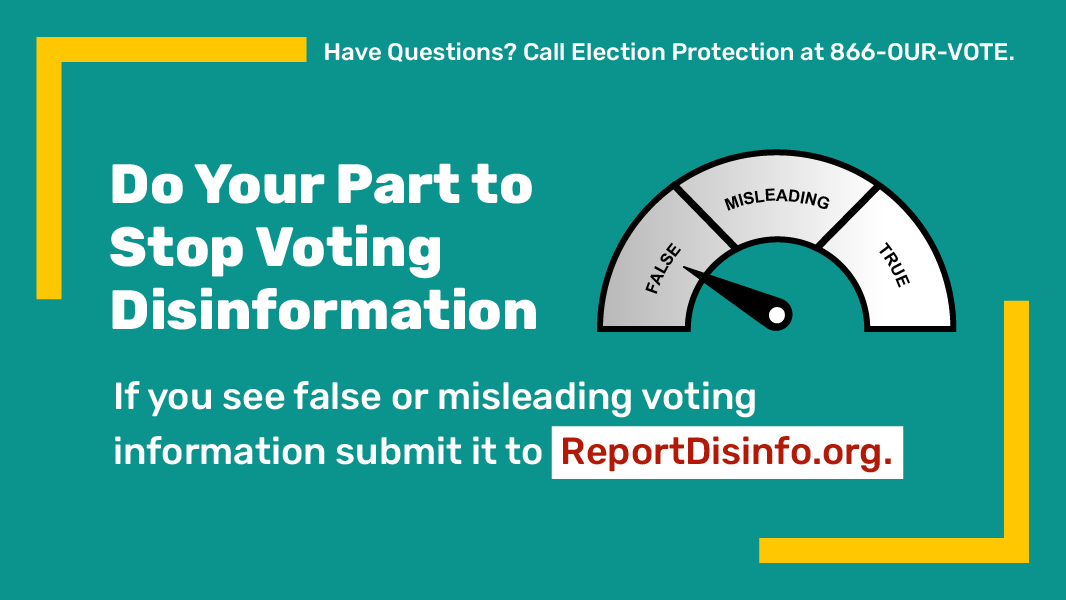 It's up to all of us to stop the spread of disinformation about voting. Best thing to do: don't engage, react or comment — that only puts the falsehoods in front of more eyes. Do take a screenshot to submit it to http://ReportDisinfo.org .pic.twitter.com/iuegoeAvm3