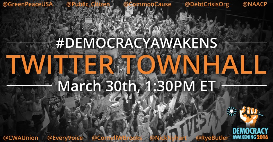 Want a democracy that works for YOU? Join the @DemAwakening Twitter Town Hall tmrw at 1:30pm ET. #DemocracyAwakenspic.twitter.com/FE8wTz408R