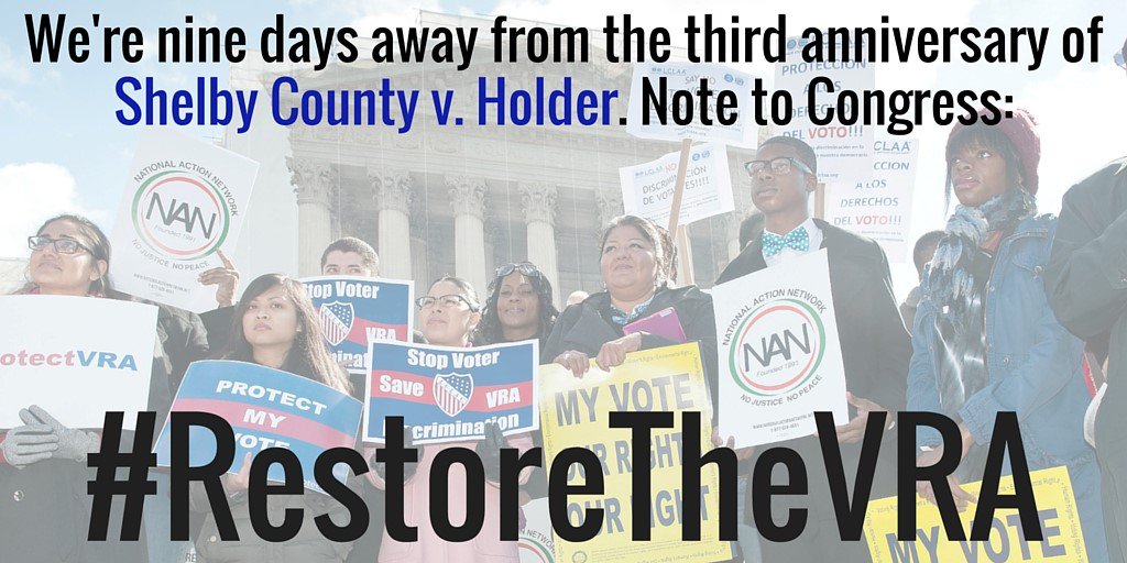 #TBT: It's been nearly 3 years since we lost the VRA's full protections. We need Congress to act. #RestoreTheVRApic.twitter.com/hjwgcERBiO