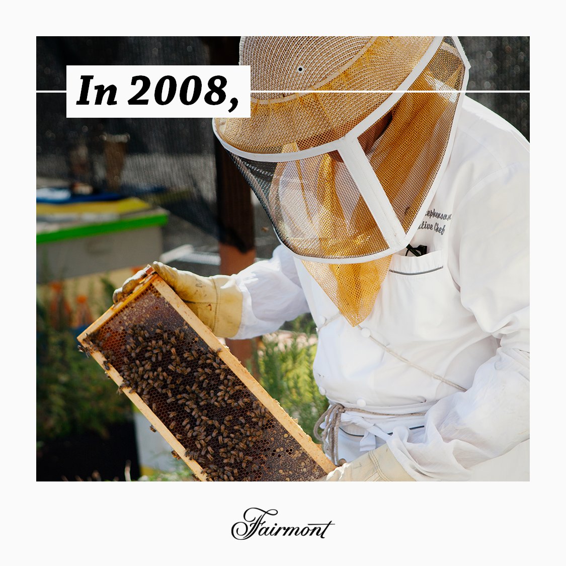 In 2008, we saw an opportunity to help support honey bee health by placing beehives on rooftop gardens.