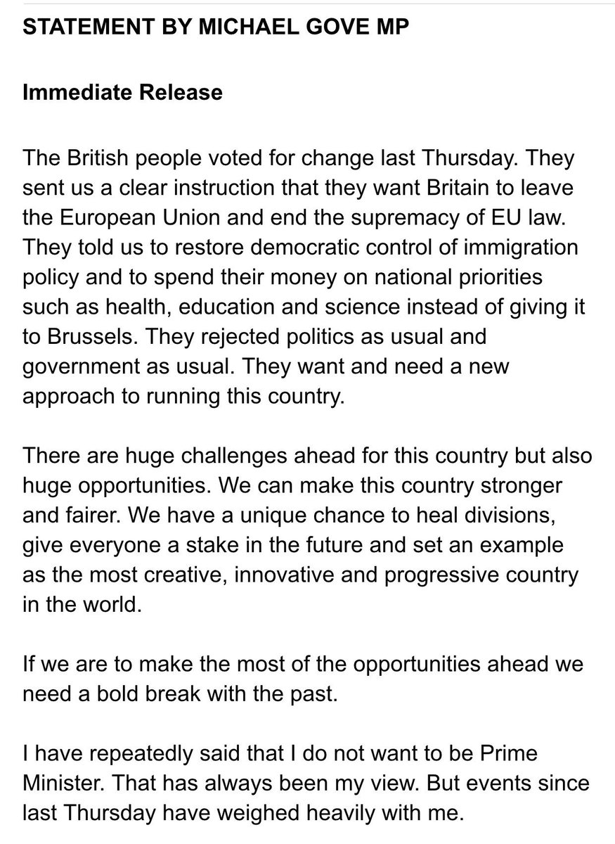 At least we now know there was a plant for Brexit all along. Get Boris to win it, stab him in the back, PM Gove.