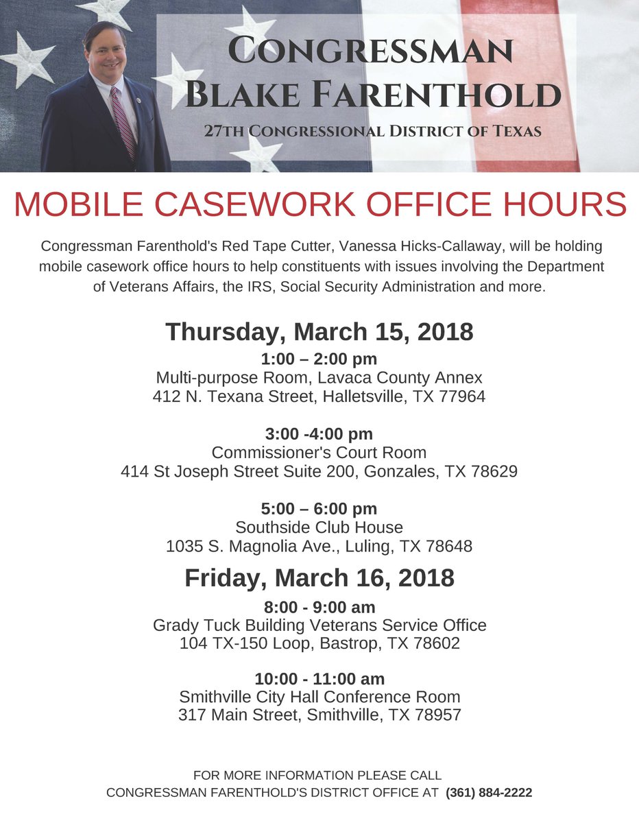If you’re having a problem dealing with the federal government, my Red Taper Cutters will be holding mobile office hours tomorrow and Friday in Halletsville, Gonzales, Luling, Bastrop, and Smithville.pic.twitter.com/vi5gWRuF7w