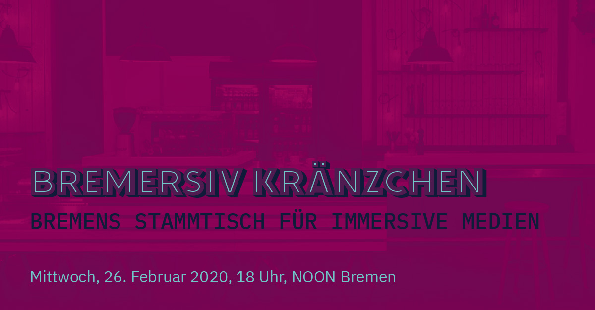 #Bremersiv Kränzchen, a regulars' table about immersive media will happen at the end of February. Let's bring the#XR community of Bremen togetherhttps://twitter.com/BREMERSIV/status/1222157396098920449 …