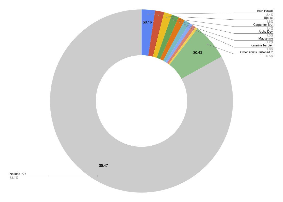 @soundcharts estimates it's about $0.0032 https://soundcharts.com/blog/music-streaming-rates-payouts …. To keep things easy, I'll take the top 10 most played artists, and group the rest.Prikaži ovu nitHvala. Twitter će to iskoristiti za poboljšanje vaše vremenske crte. PoništiPoništi -