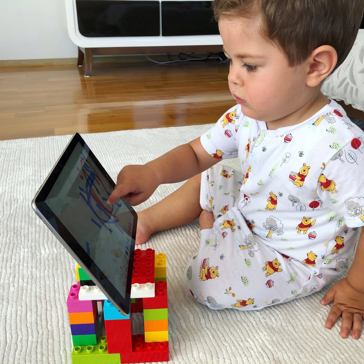 Lately I’m trying to make the iPad a creation device rather than a consumption device for my son. We’re already limiting how much he can see (under our watch) but he started to like scribbling sketches. So, He&I built this standing desk out of LEGOs to make it easier to use :)pic.twitter.com/0dy6TNETXP