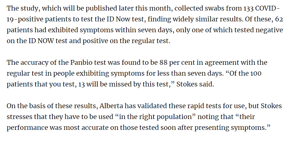 There's a tiny bit of exclusive news in this explainer on the 2 rapid tests being used in Canada. An Alberta validation test—a study to make sure a medical test works for the target patients— found both to be largely accurate with a notable caveat: https://www.chatelaine.com/health/rapid-covid-19-tests-canada-faq/ …pic.twitter.com/4FqwkI4xyb