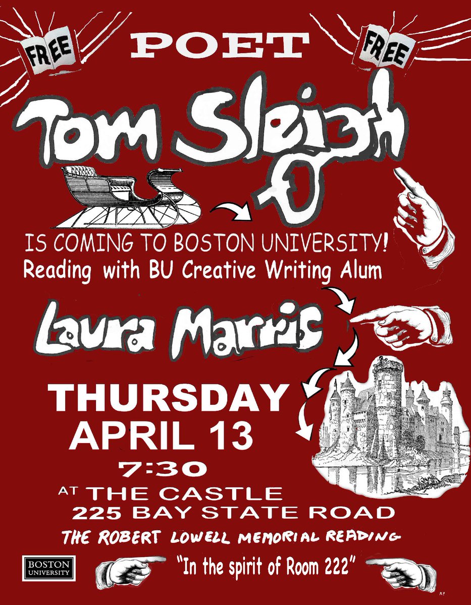 Reminder! April 13th, 7:30 pm: Tom Sleigh reads with Laura Marris at the BU Castle as a part of the Robert Lowell Memorial Reading Series.pic.twitter.com/rSHXIfMXLY