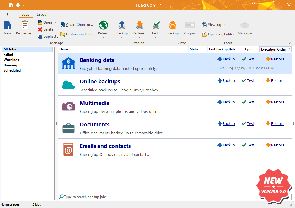 FBackup 9.0 was released. This is a new version that includes the option to add backup sources from the cloud (