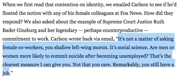 Tucker Carlson calls Erik Wemple a "shallow, left-wing moron," and says: "Remarkably, you still have a job." https://www.washingtonpost.com/opinions/2019/01/04/fox-news-guest-tucker-carlson-its-almost-impossible-find-sexism-these-days …pic.twitter.com/BpfF0oNr8d