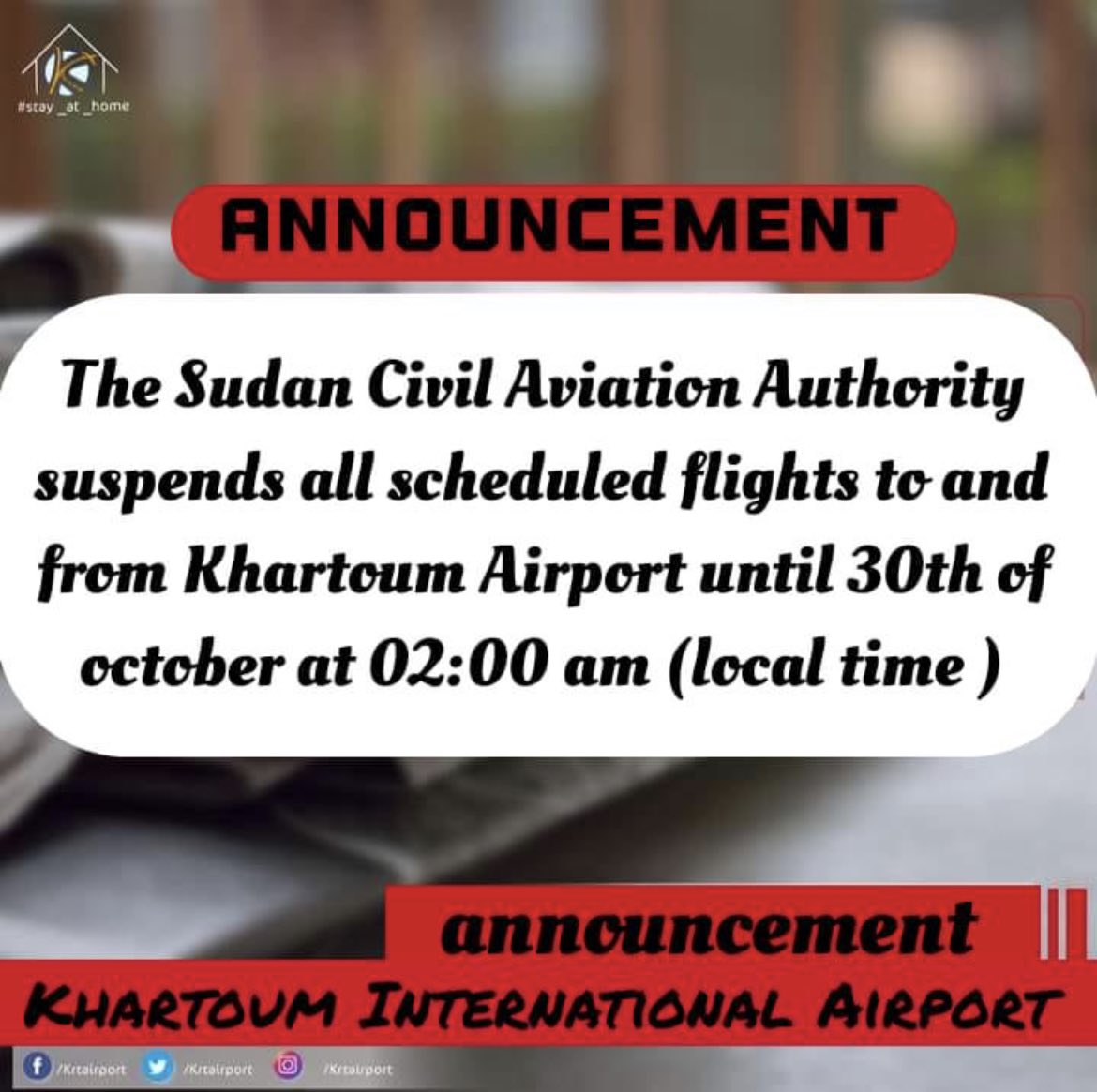 All flights in and out of Sudan are cancelled until October 30 @ 2 am.pic.twitter.com/hKcjaNGFrF