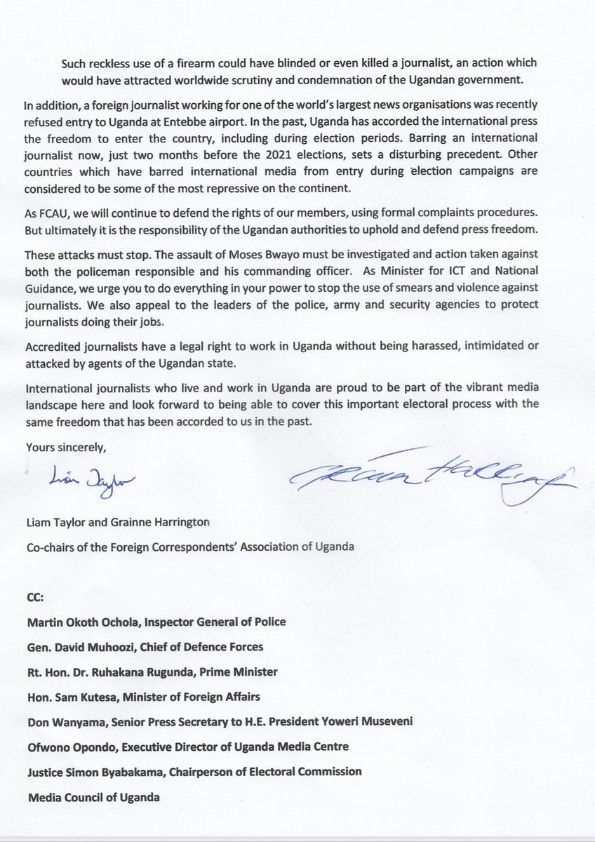 Attacks on journalists in #Uganda must stop. International journalists look forward to being able to cover #UGVotes2021 with the same freedom as in the past.