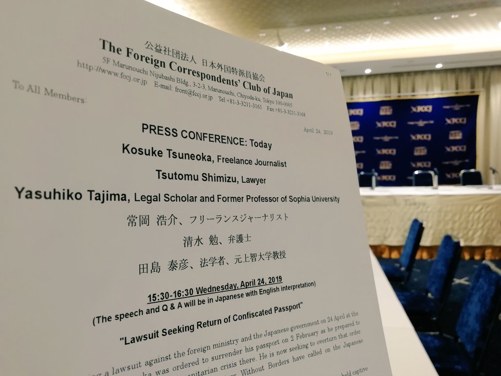 Starting soon: Kosuke Tsunekoa "Lawsuit Seeking Return of Confiscated Passport" press conference. Watch the live stream from 15:30 on our website: http://fccj.or.jp pic.twitter.com/gOJtB67K2D