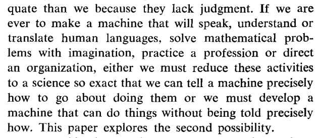 The idea of machines that learn was introduced by Turing in 1950; as far as I can tell Friedberg 1958 was the first to articulate a concrete implementation (program synthesis via mutations + selection) https://pdfs.semanticscholar.org/46be/d4c578e96e05fa3e5704620c4ffa0746d78f.pdf … Am I missing anything else?pic.twitter.com/7QjDBRMvvz