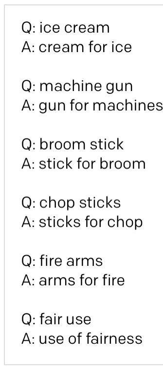 noun compounds interpretation. it makes a mistake here and there, but, overall wow. (cc @VeredShwartz )pic.twitter.com/vu4WtecNU4