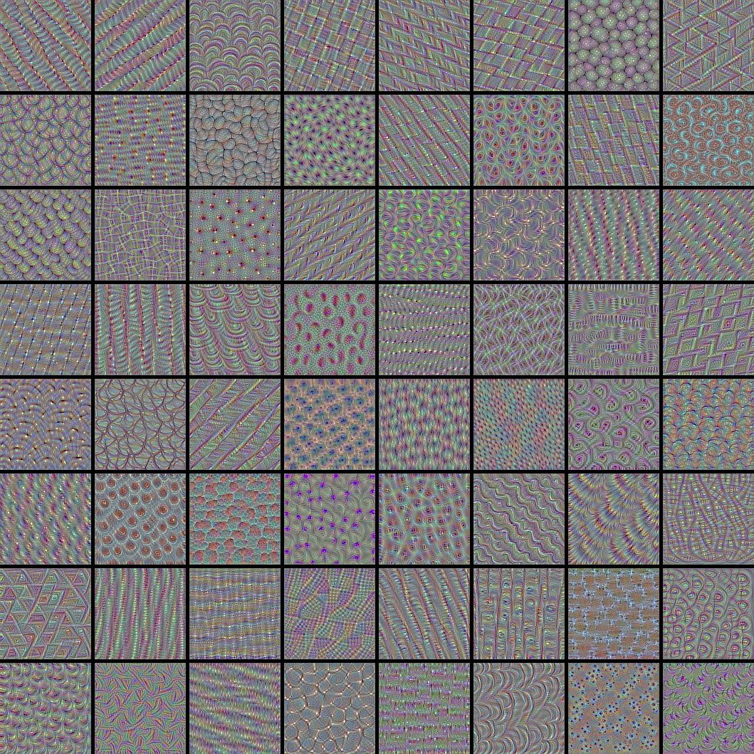 More filters from VGG16. These are from conv4_1. Code: https://github.com/fchollet/keras/blob/master/examples/conv_filter_visualization.py …pic.twitter.com/45kldh8JP2