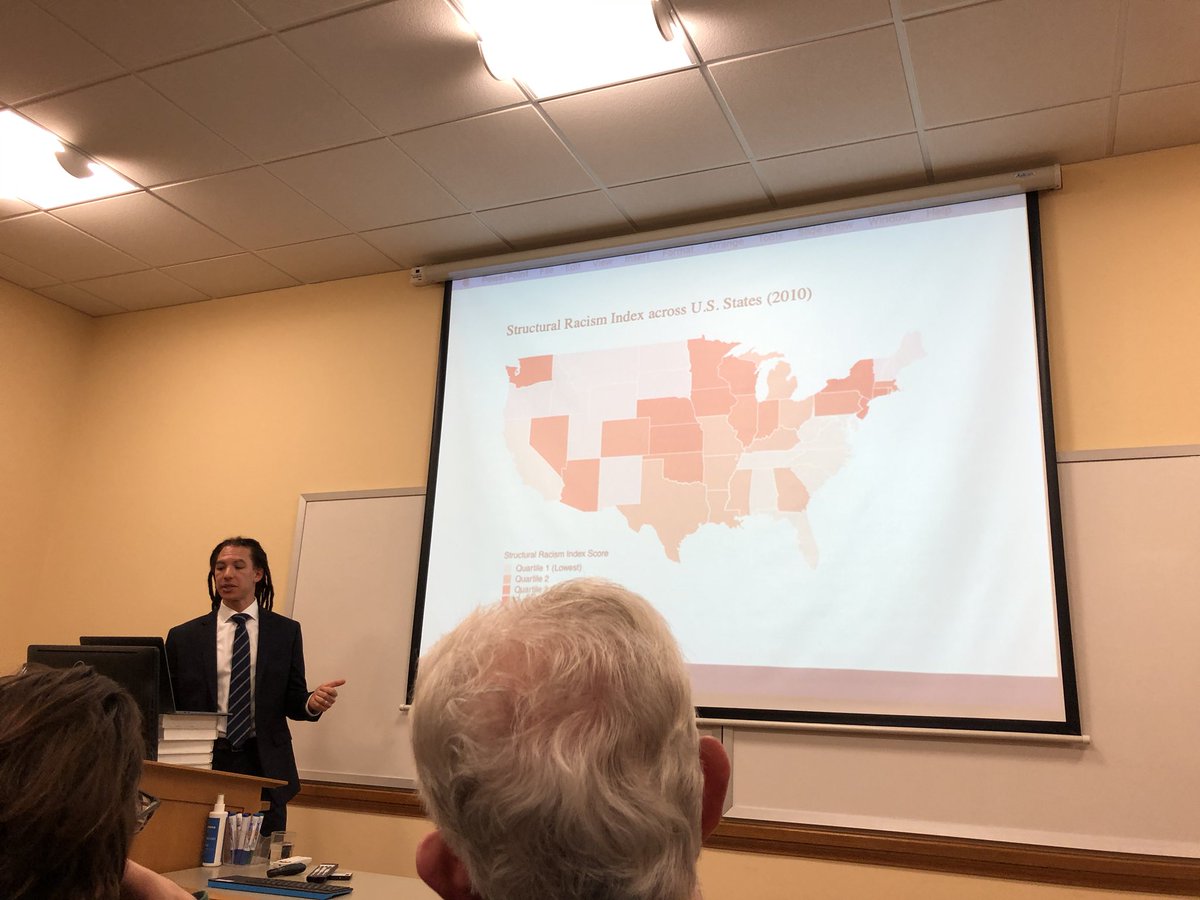 @NuffieldCollege Sociology seminar today by@tysonbrown on the effects of structural racism on health among blacks and whites in the US. Novel measure of structural racism, with structural racism strongest in the Midwestpic.twitter.com/Njd3sXjVCY