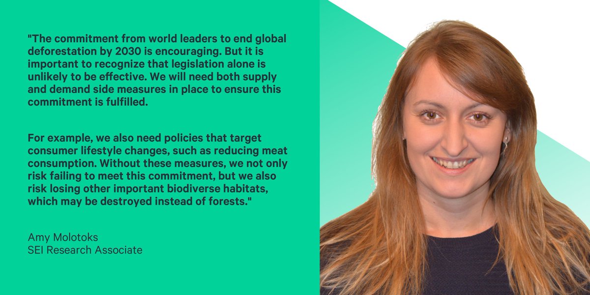 #COP26 this week, more than 100 global leaders have pledged to end#deforestation by 2030. "This is encouraging" says SEI's@Amy_Molotoks, "but legislation alone is unlikely to be effective".@UniOfYork@YESIUoYpic.twitter.com/sfwEndDI8k