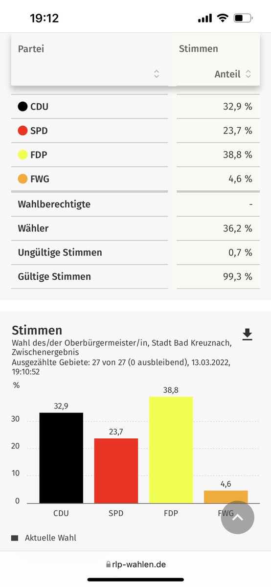 @LetzEmanuel gewinnt bei der OB-Wahl in Bad Kreuznach den ersten Wahlgang mit 39% und zieht in die Stichwahl am 27. März ein. Bad Kreuznach will den Wechsel. Jetzt heißt es: Letz Go!