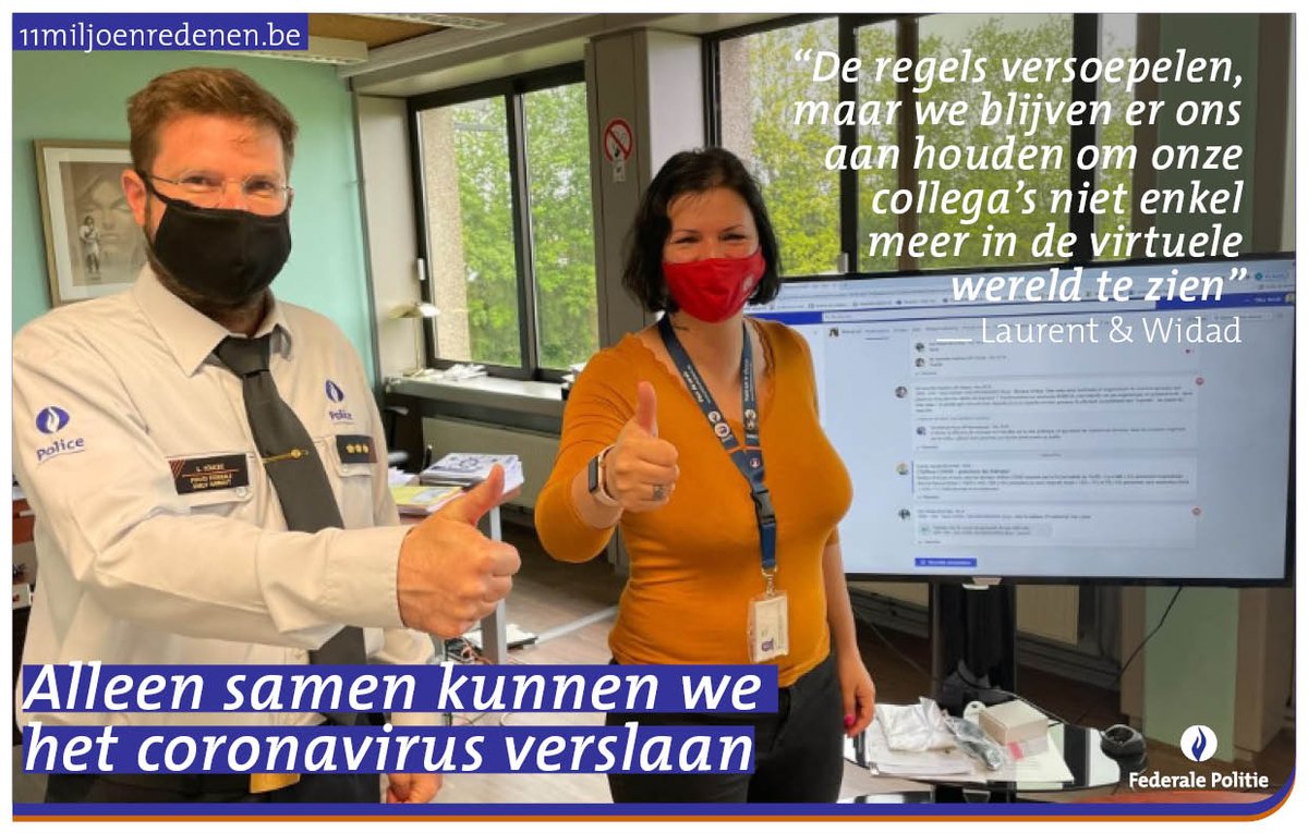 Hoofdcommissaris Laurent Coucke, directeur-coördinator van Henegouwen, en adviseur Widad Asri, kijken ernaar uit hun collega’s terug bij hen op de werkplek te mogen verwelkomen. Ze blijven zich dus aan de regels houden!