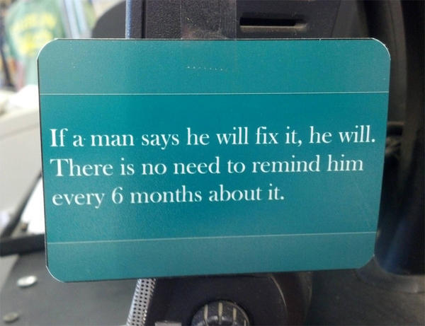 Если мужчина говорит, что он это исправит, значит исправит, необязательно напоминать ему об этом каждые 6 месяцевpic.twitter.com/pJZmFsuS