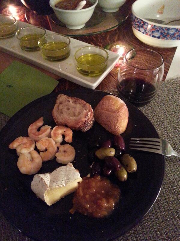 Shrimp cooked w/Miller's Blend. Olives, brie, pumpkin marmalade, bread, wine,dipping oil.