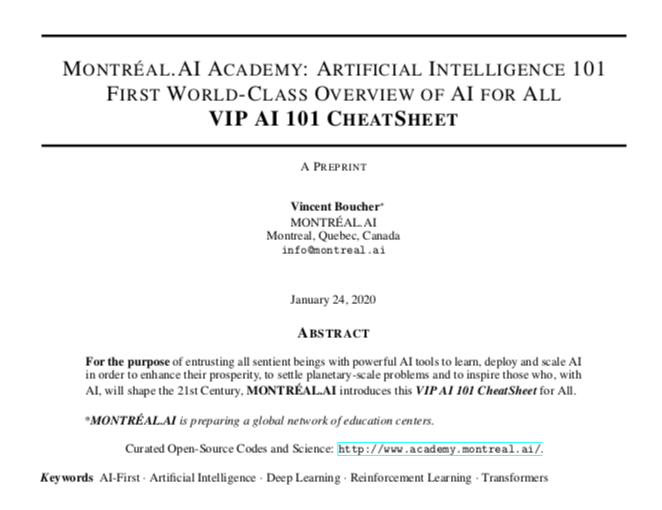 𝗩𝗜𝗣 𝗔𝗜 𝗖𝗵𝗲𝗮𝘁𝗦𝗵𝗲𝗲𝘁 𝟭𝟬𝟭 ~ 𝑴𝒐𝒏𝒕𝒓𝒆𝒂𝒍.𝑨𝑰 An extremely solid and informative 12-page technical summary of core deep learning algorithms. Download: http://www.montreal.ai/ai4all.pdf