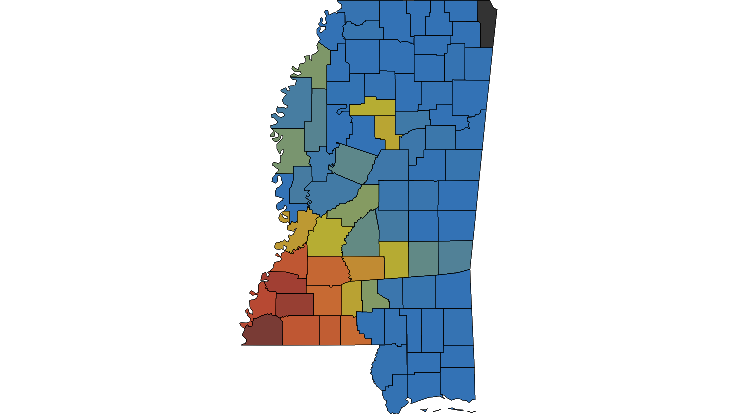 Here's a look at Tropical Storm Delta and the power outages currently in Mississippi. There are roughly 95,700 customers without power. Damage assessments begin this morning.pic.twitter.com/UuQwKXJ90w