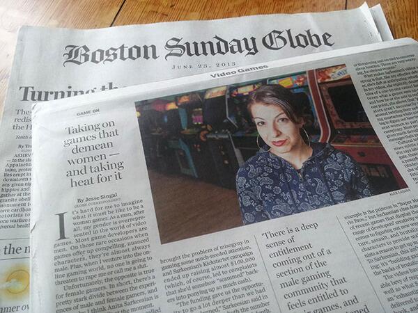@femfreq: print edition of Boston Globe includes an interview with me about Tropes vs Women in Video Games. Photo:pic.twitter.com/5aJR6B5wh9
