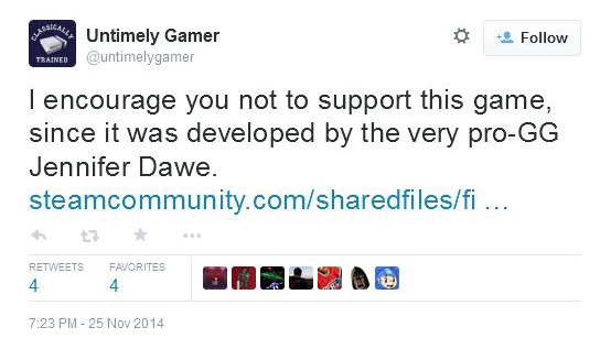 .@femfreq This is what those opposed to #GamerGate are doing. They are actively pushing women out of the industry.pic.twitter.com/MCsuztQDzP