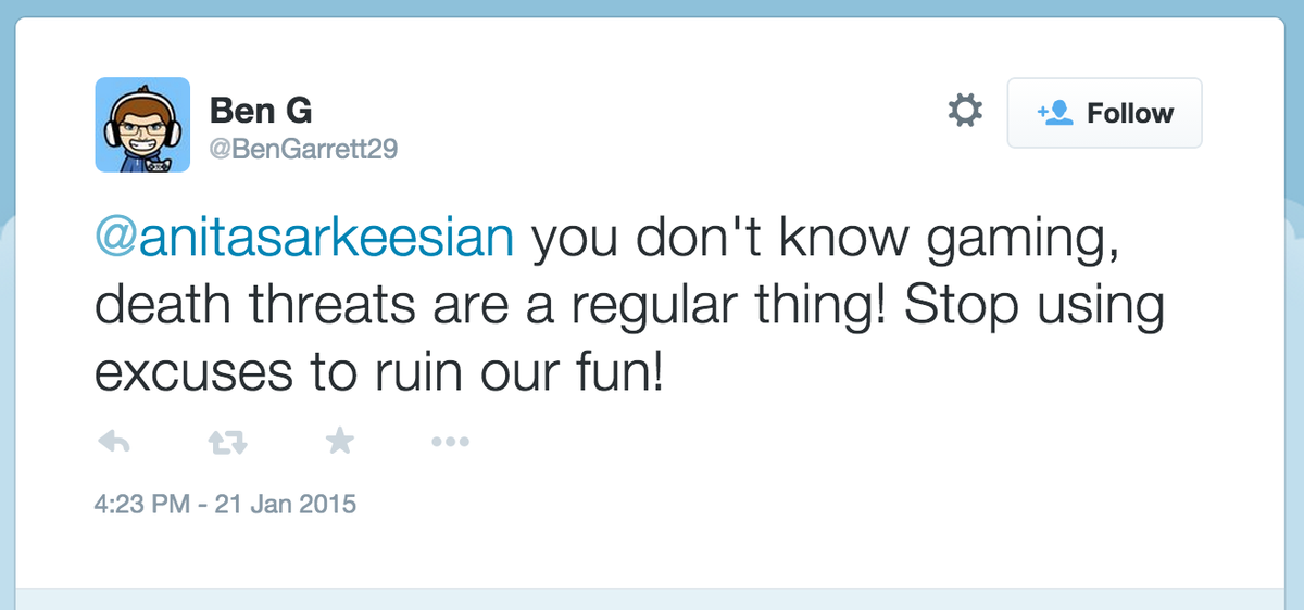 @femfreq How could death (and rape) threats ever be a behavior that we should NOT try to change? -