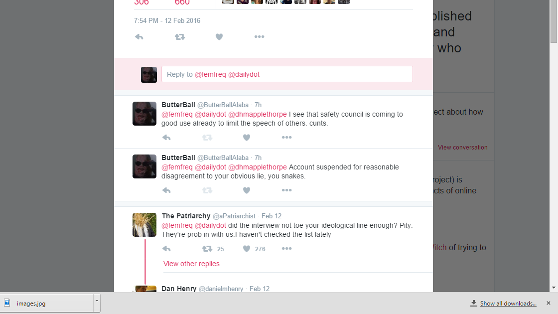 @femfreq You are right in that it is wrong to make sexual innuendo’s and slanderous insults, however… Just block a person and move on. -