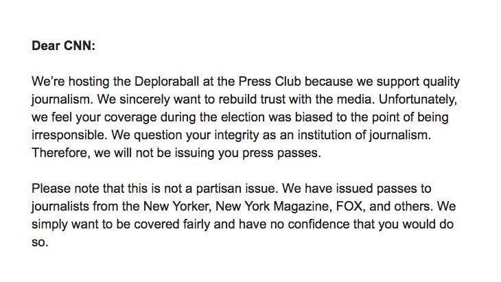 You said the man who will be President tomorrow is at war with CNN. That a bit different to personal party invitations.