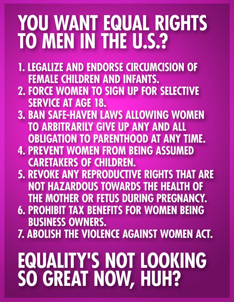 Women already have the same rights as men Not trying to undermine any effort, but still