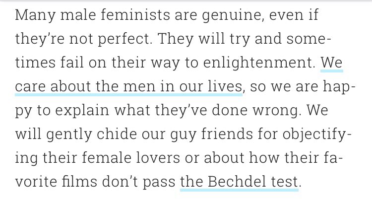 Putting feminist men in quotes like that have major implications on whether you think men who identify as feminist are.
