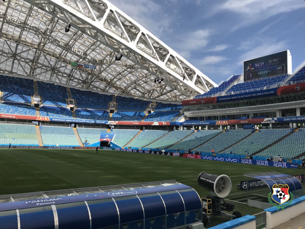 Selección nacional en el reconocimiento de cancha del estadio Olímpico Fisth de Sochi. #PanamáEnRusia #Rusia2018pic.twitter.com/hEe4qou4eq