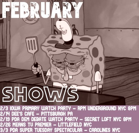 can not hype this enough, the Caroline's show is going to be our biggest thing to date. it is a comedy club and they will make you buy nachos and shit but we will make it WORTH IT BIIIITCH