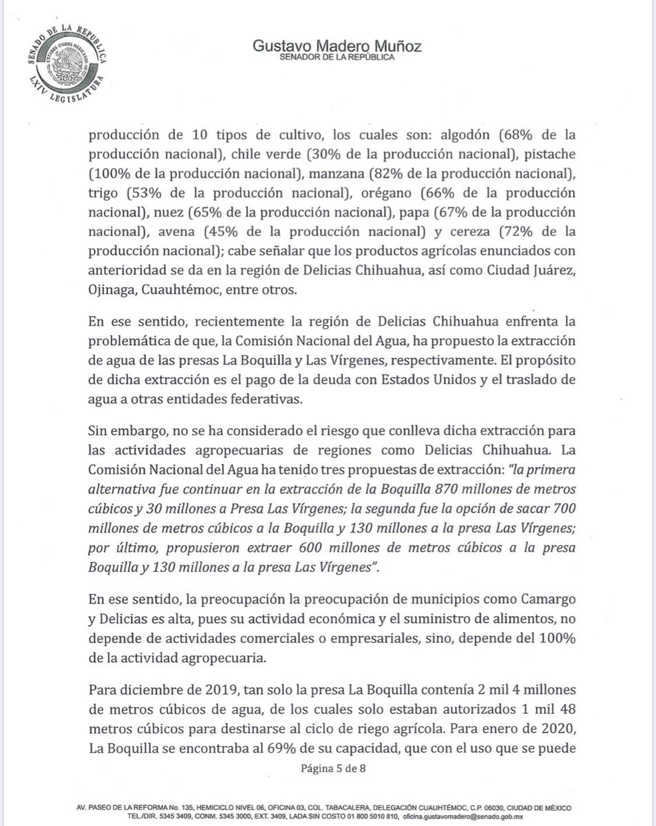 @senadomexicano exhorto al@GobiernoMX para que no actúe unilateral y autoritariamente para sacar 600 millones de metros cúbicos de agua de la#PresaLaBoquilla para que@conagua_mx le pague a