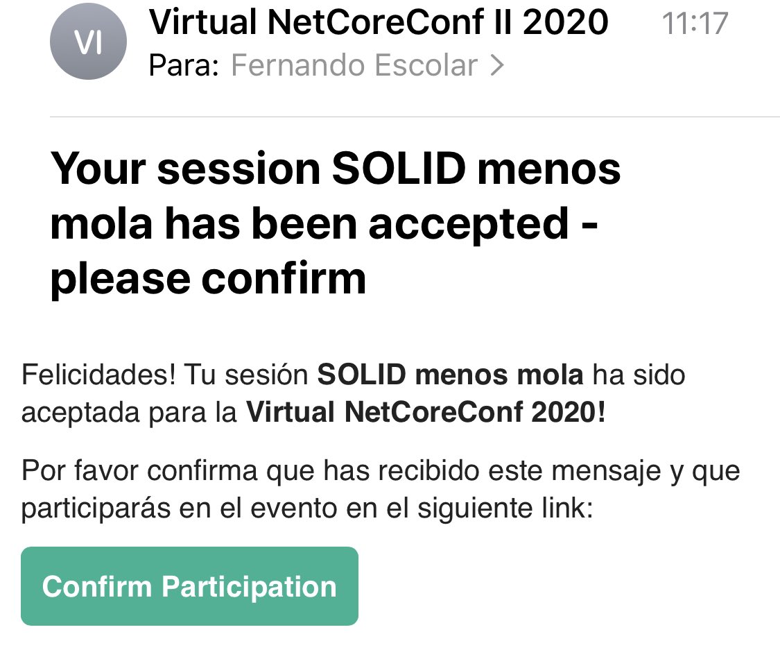 Uno de los pocos que han participado en todas las ediciones de la #netcoreconf el gran@fernandoescolar nos contara porque SOLID menos mola#netcoreconf#dotnet#cloud#microsoft#Azurepic.twitter.com/GRr3rKHx1u