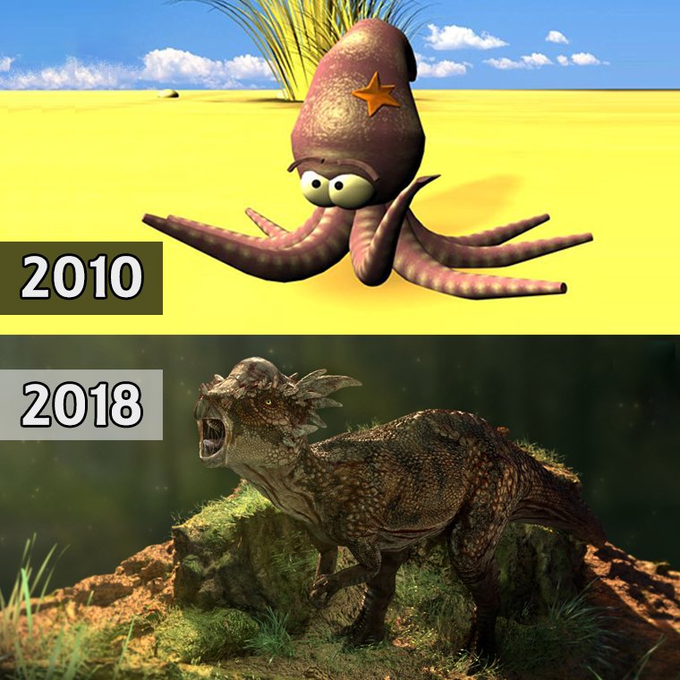 Crazy that i do 3D since 8 years now. (well, 5 years every day). That is my 1st creature ever! But i wanted to show you guys, EVERY artist started at Zero. There is no talent here (maybe 1%) but everything else is just work, stress, tears, time & love. YOU can do it TOO!pic.twitter.com/h4XAVUIVmh