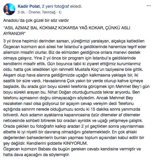 Özgecan Aslan'ın babası açıklama yapmış. Nihat Doğan için "şahsiyetsizliğini ve karaktersizliğini bir kez daha ortaya koydu" demiş.pic.twitter.com/omBikgnJBR