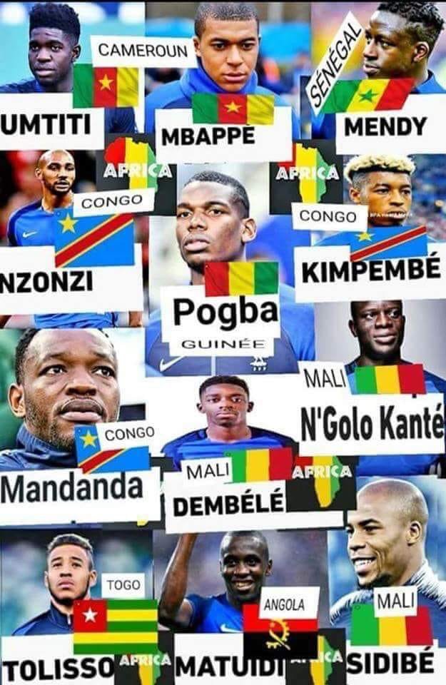 "Seleção dos imigrantes" pra se referir a França é o novo bait sobre a copa. Sim. Os jogadores da seleção tem ascendência em países africanos, tal qual os jogadores da seleção brasileira tem ascendência europeia por exemplo. Todos porém seguem sendo franceses