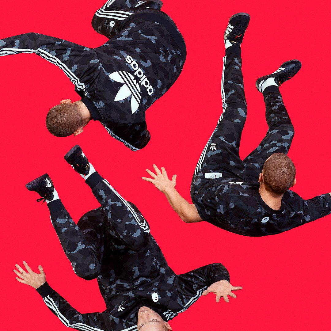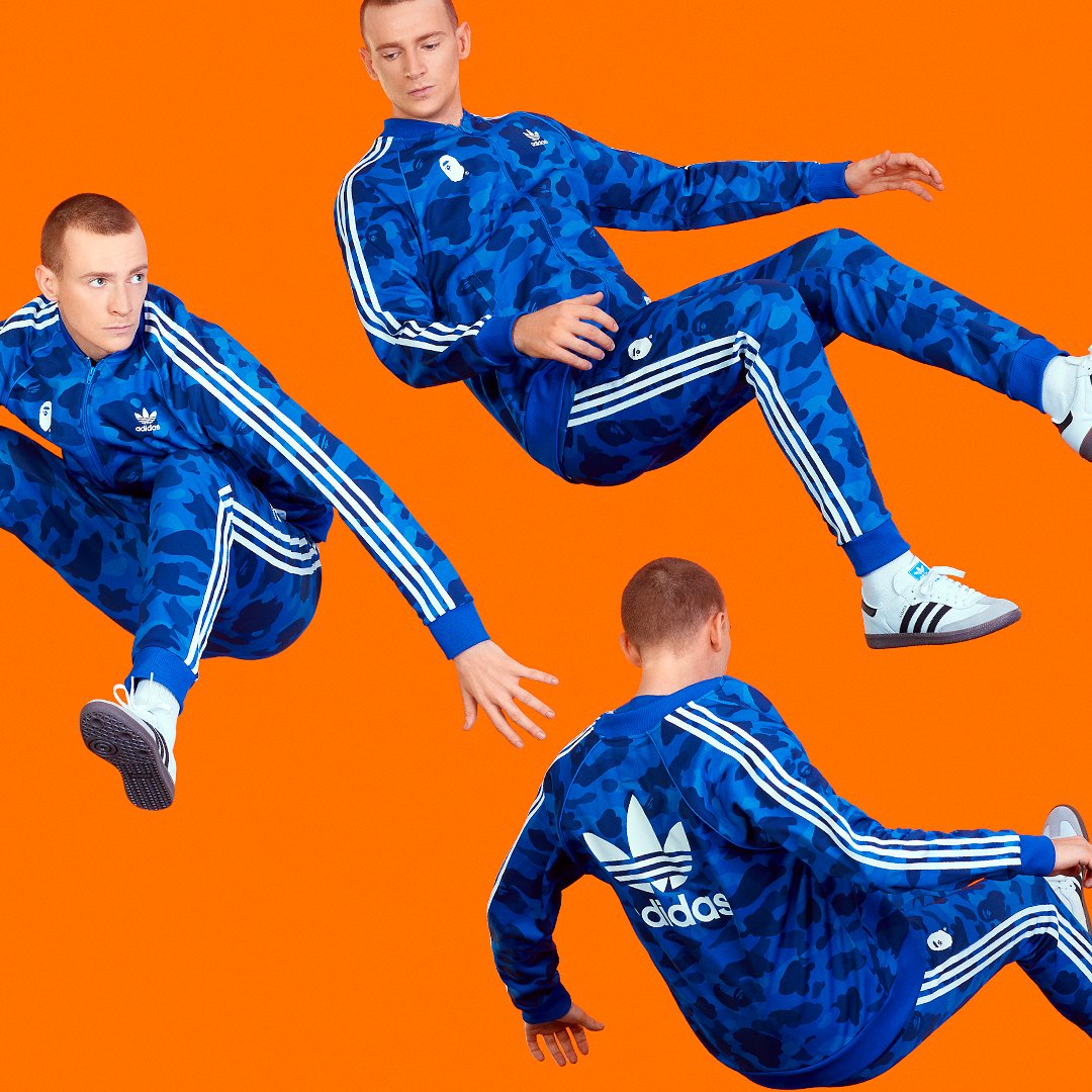 A Bathing Ape brings their iconic camouflage print to adidas basics with the BAPE x