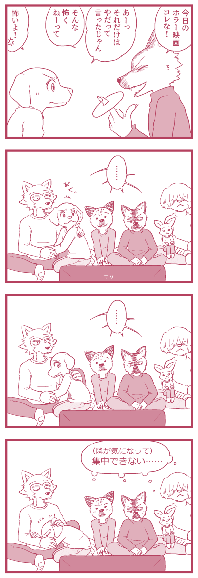 待っ…??今まで気づかなかったけどビーストライク行くのにレゴシに701が会いに行くとこ、例の缶バッジのシーンジャクちゃんだけめっちゃしっぽ振ってるじゃん…701とじゃくちゃんの間ですらすでに温度差がある…クールにふるまおうとしてもジャクちゃんだけほっぺ赤いしもう無理…えっ何ずっと赤い…