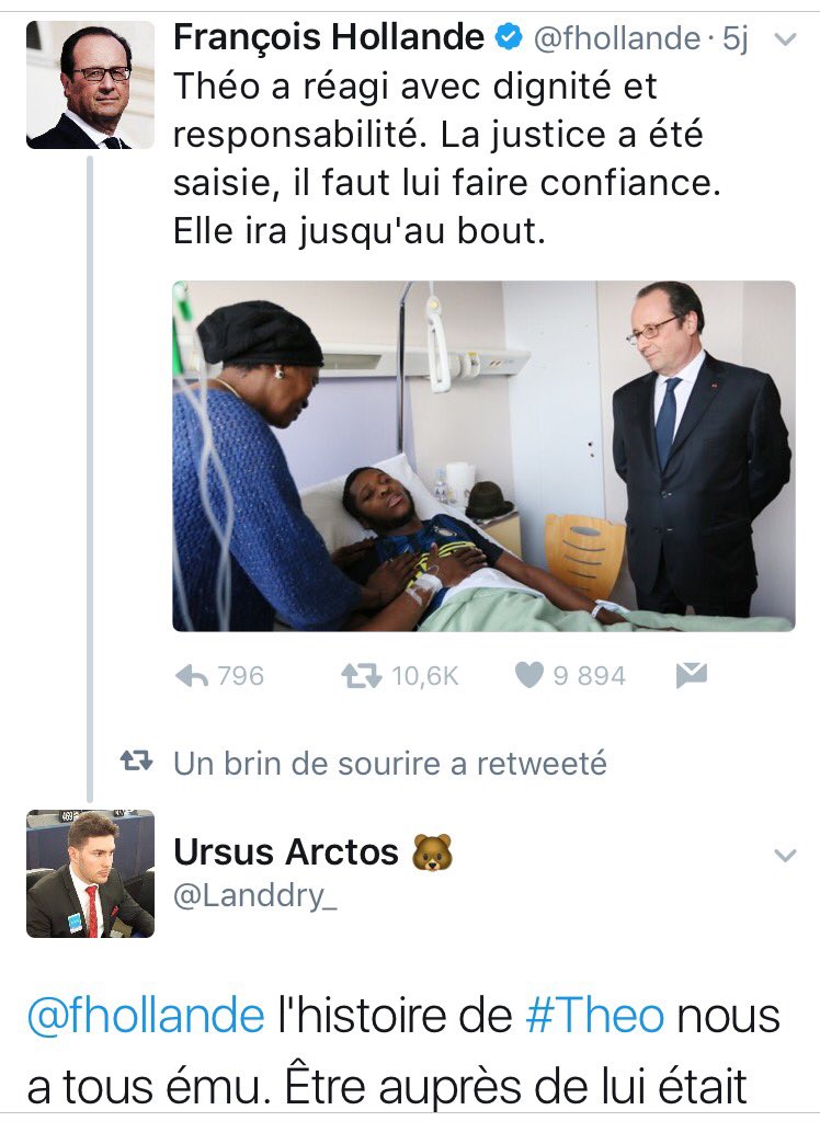 #Theo nous a tous ému. Être auprès de lui était un devoir. Merci d'être à son chevet.#justicepourtheo -