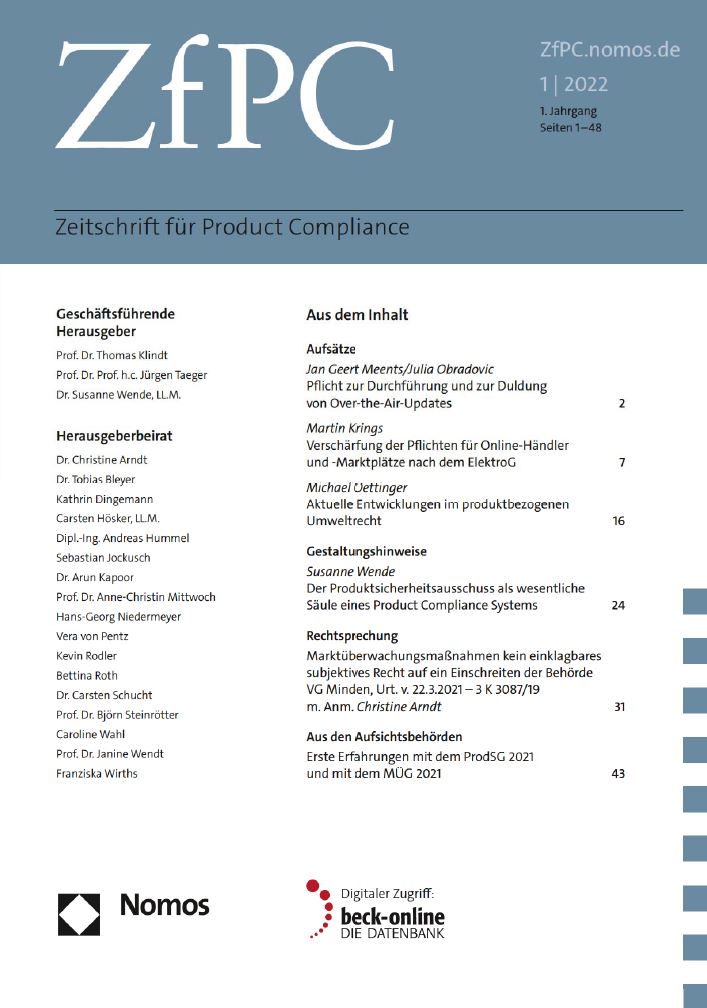 Product Compliance - ein Thema von großer Bedeutung für Hersteller, Händler und Anwender. ProdHG, ProdSG, MÜVO und viele hochaktuelle Themen werden von der ab April erscheinenden 'Zeitschrift für Product Compliance' behandelt. Ich freue mich, als Mitherausgeber dabei zu sein.pic.twitter.com/WfOjWGvdno