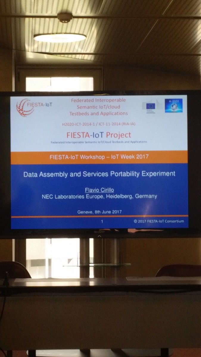 Flavio Cirillo describes an IoT experiment using Fiesta. Integrating heterogeneous data from multiple testbeds #IoTWeek2017#interoperabilitypic.twitter.com/0vN28UGSPY