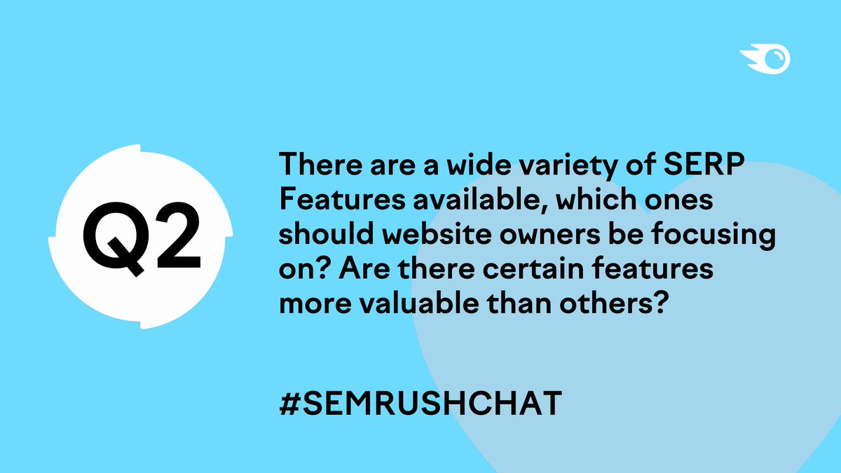 A2a: It certainly depends on your business. If you're a restaurant, local SERP features/map packs are going to be essential. For a brand search, a KG panel is a nice to have. For queries where are is a featured snippet for instance, it's better to have than to not