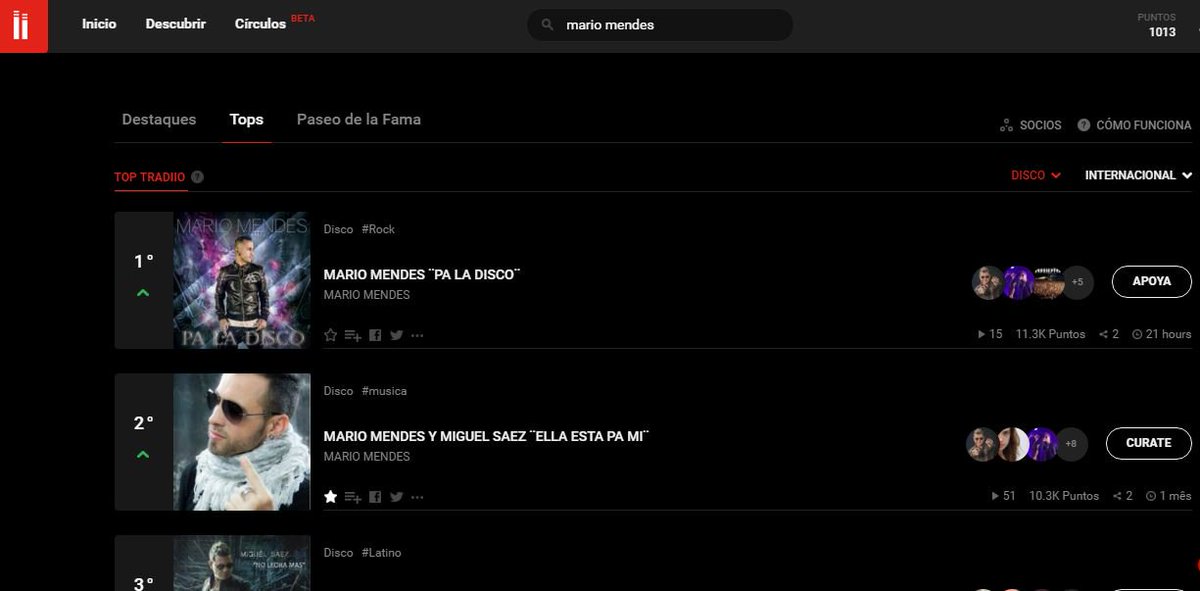 @MARIOMENDESOFI#PaLaDisco Nº1 disco internacional@Tradiio https://tradiio.com/home/top/disco/all …pic.twitter.com/5IiRnD6B1G