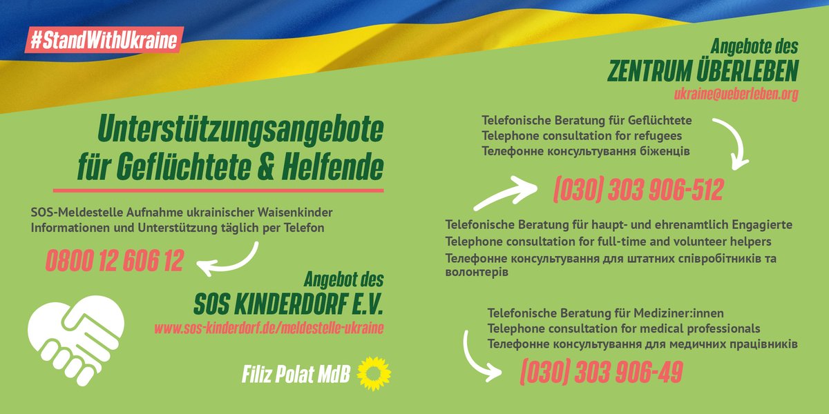 #Ukraine ist eine unglaubliche seelische Belastung für alle Geflüchteten, aber auch ehrenamtlich Helfenden. Auf dem folgenden Bild sind wichtige#Unterstützungsangebote für Geflüchtete und Helfende zusammengefasst.pic.twitter.com/SAp6i4w5uq